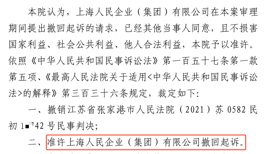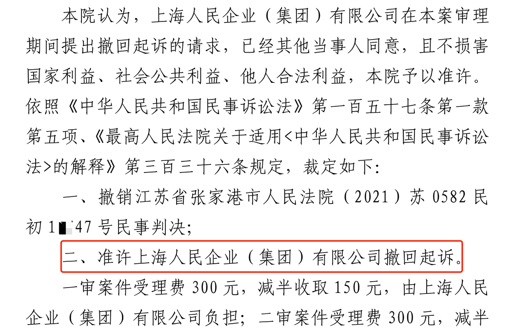 陕西省胜诉佳讯 | 人民企业系列案苏州六案上海人民公司撤诉