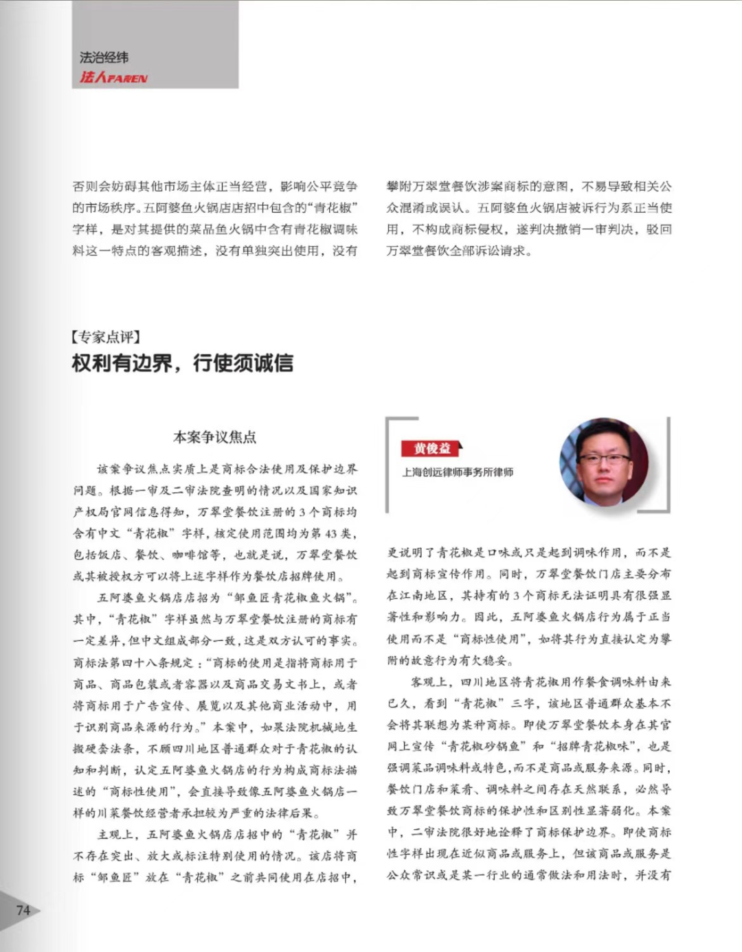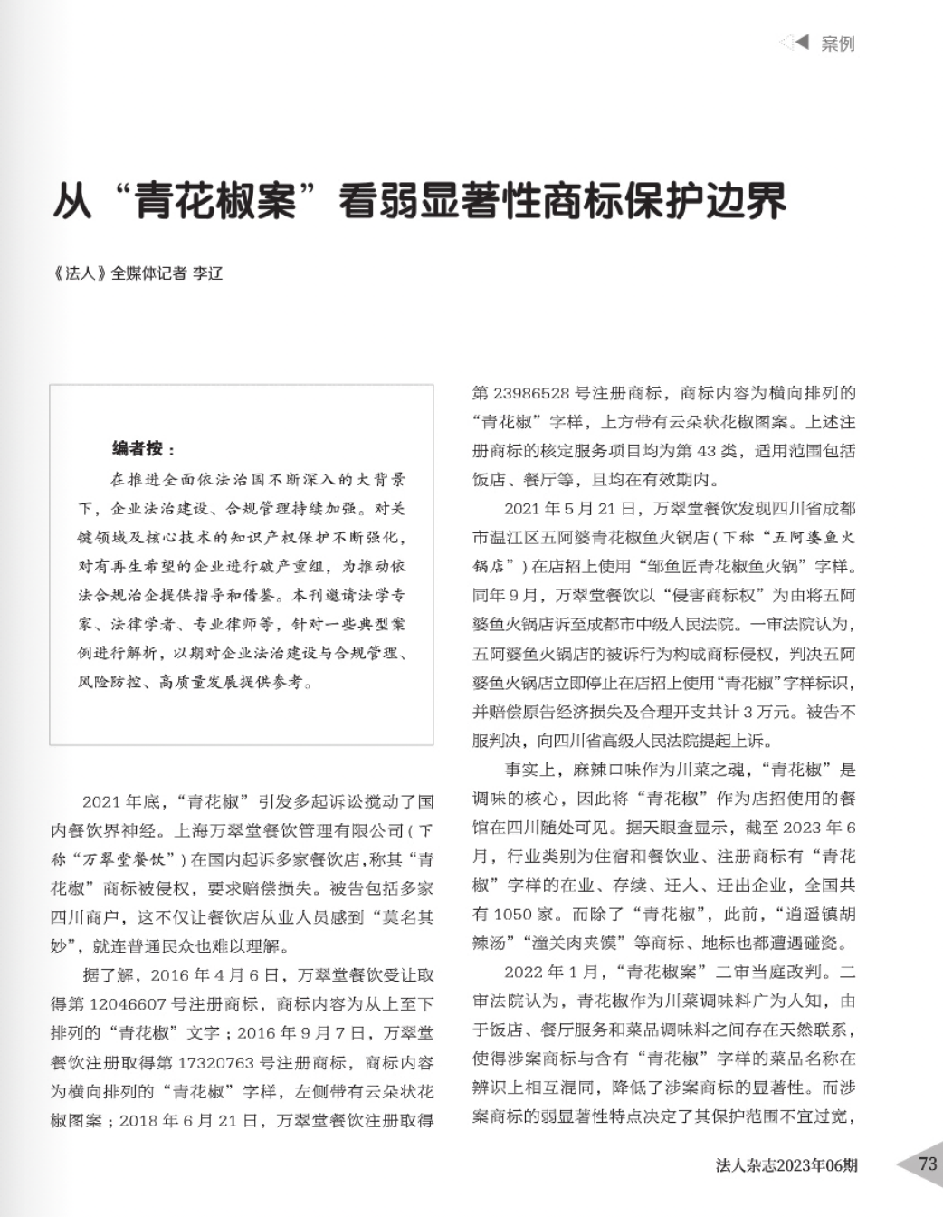 陕西省辉知简讯 | 辉知队黄俊益律师应“法治日报”旗下杂志邀请,就“青花椒”案发表专家点评