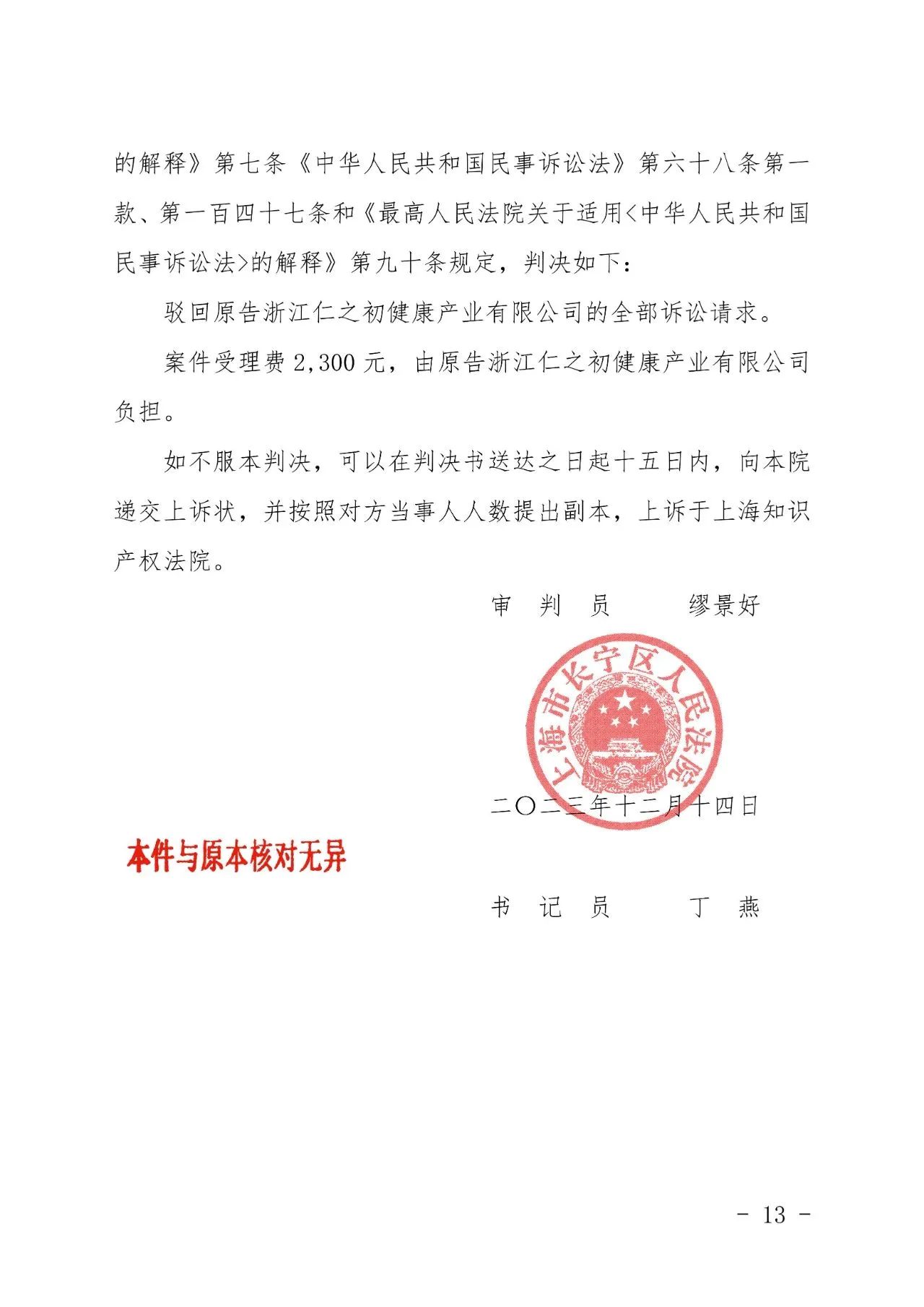 陕西省辉知胜诉佳讯 | “仁之初健康”著作权及不正当竞争纠纷案,法院:驳回全部诉讼请求!