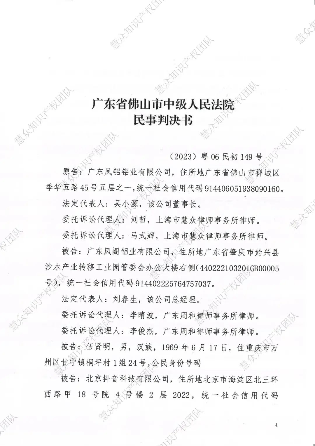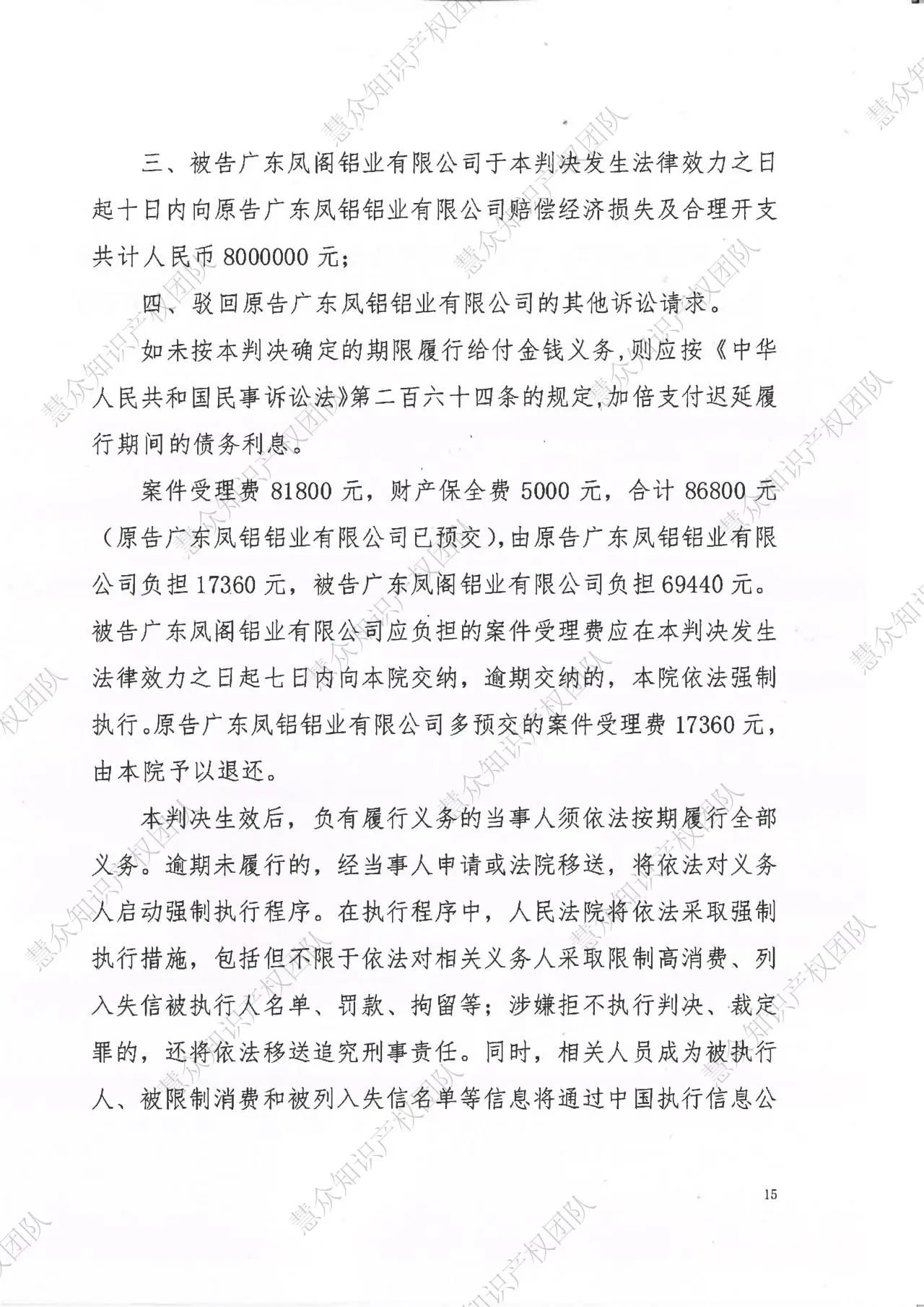 陕西省判赔800万!辉知队代理“凤铝”商标维权案胜诉